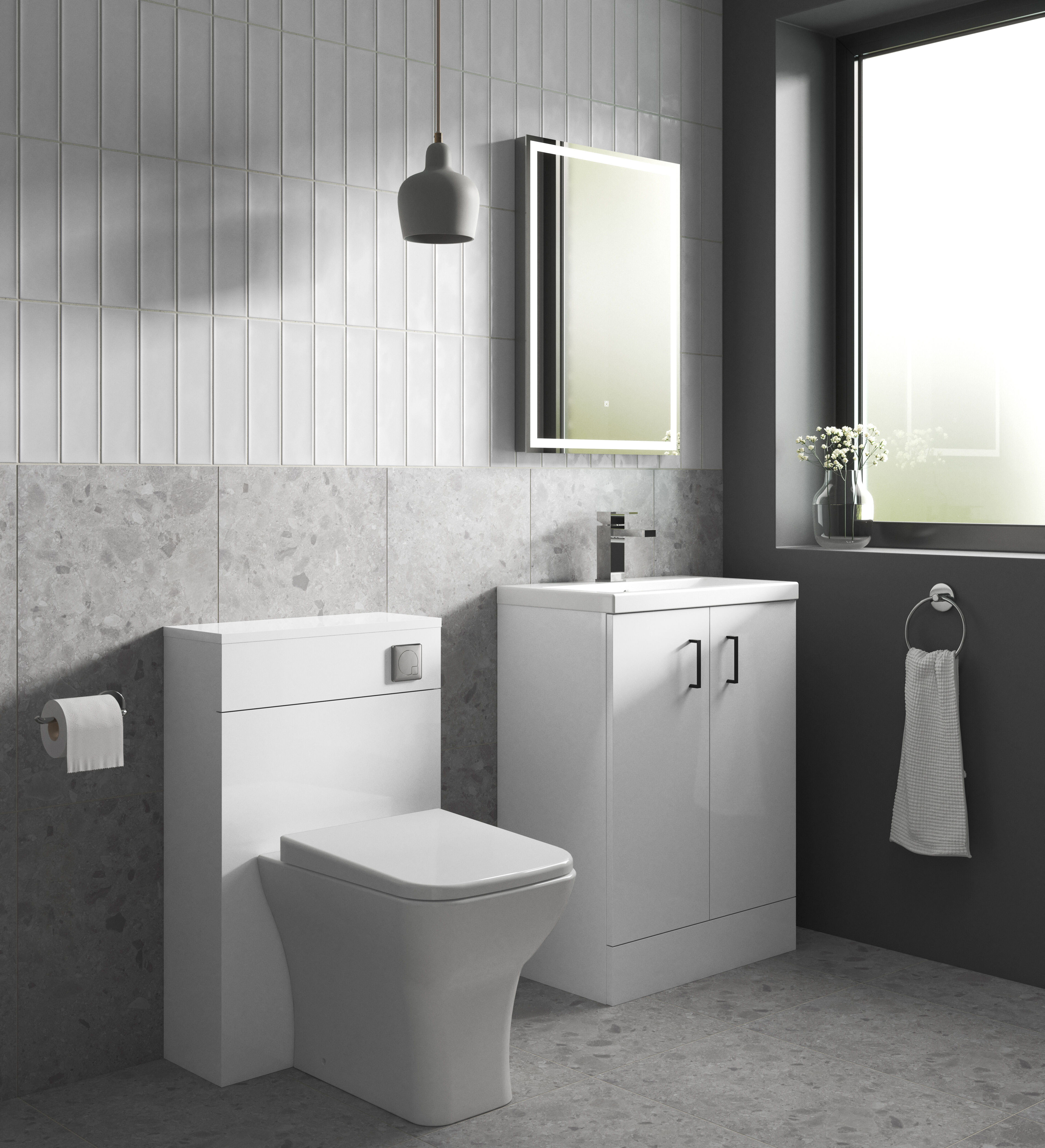 nuie Arno Floor Standing 2 Door Vanity and Polymarble Basin 600mm - Gloss White