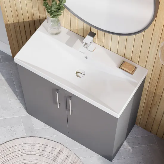 Nuie Arno 800mm Satin Grey Floor Standing 2 Drawer Vanity Unit With Basin