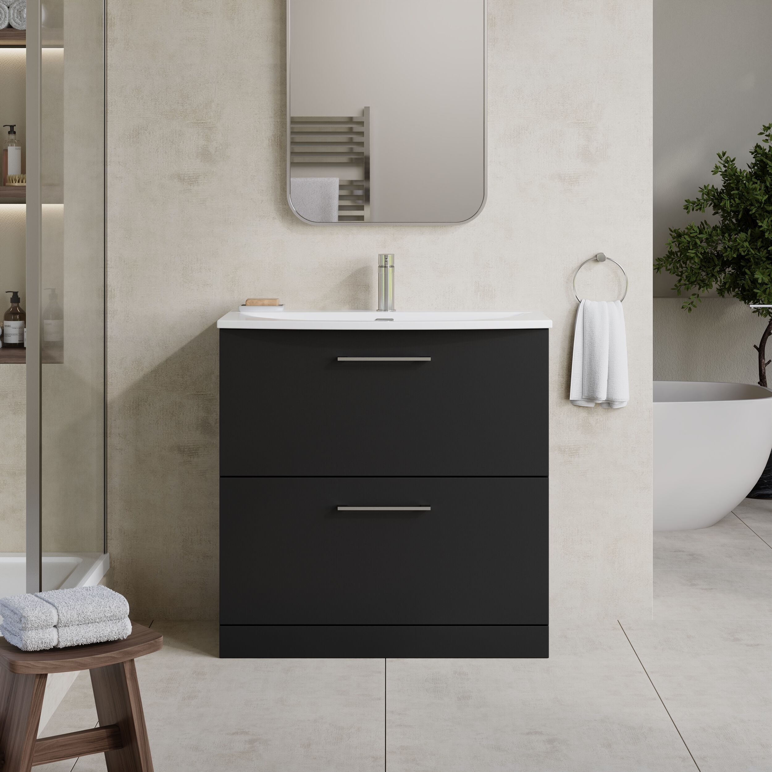 Nuie Arno 800mm Floor Standing 2-Drawer Vanity Unit with Curved Basin