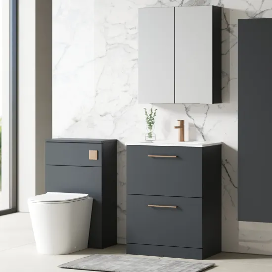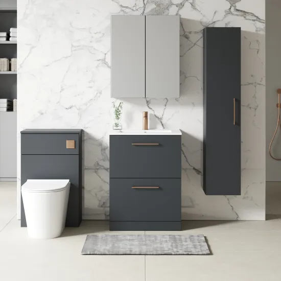 nuie Arno Floor Standing 2 Drawer Vanity & Minimalist Ceramic Basin, 600mm - Soft Black
