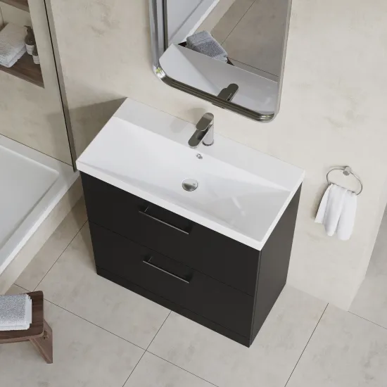 Nuie Arno 800mm Floor Standing 2-Drawer Charcoal Black Vanity Unit with Basin