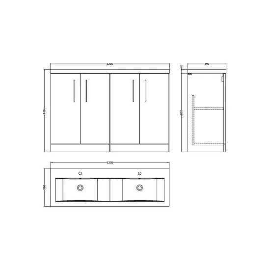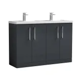 Nuie Arno 1200mm Soft Black Floor Standing 4 Door Vanity Unit with Double Basin with Handles