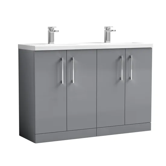 Nuie 1205mm Satin Grey Floor Standing 4 Door Vanity Unit with Double Basin with Handles