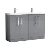 Nuie Arno 1200mm Satin Grey Floor Standing 4 Door Vanity Unit With Double Ceramic Basin