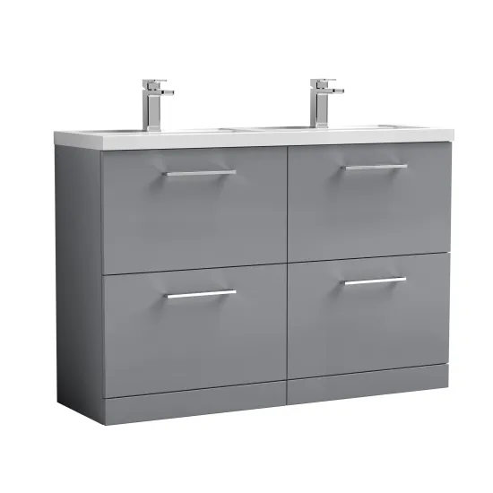 Nuie Contemporary 1205mm Satin Grey Rigid Floor Standing 4 Drawer Vanity & Double Basin