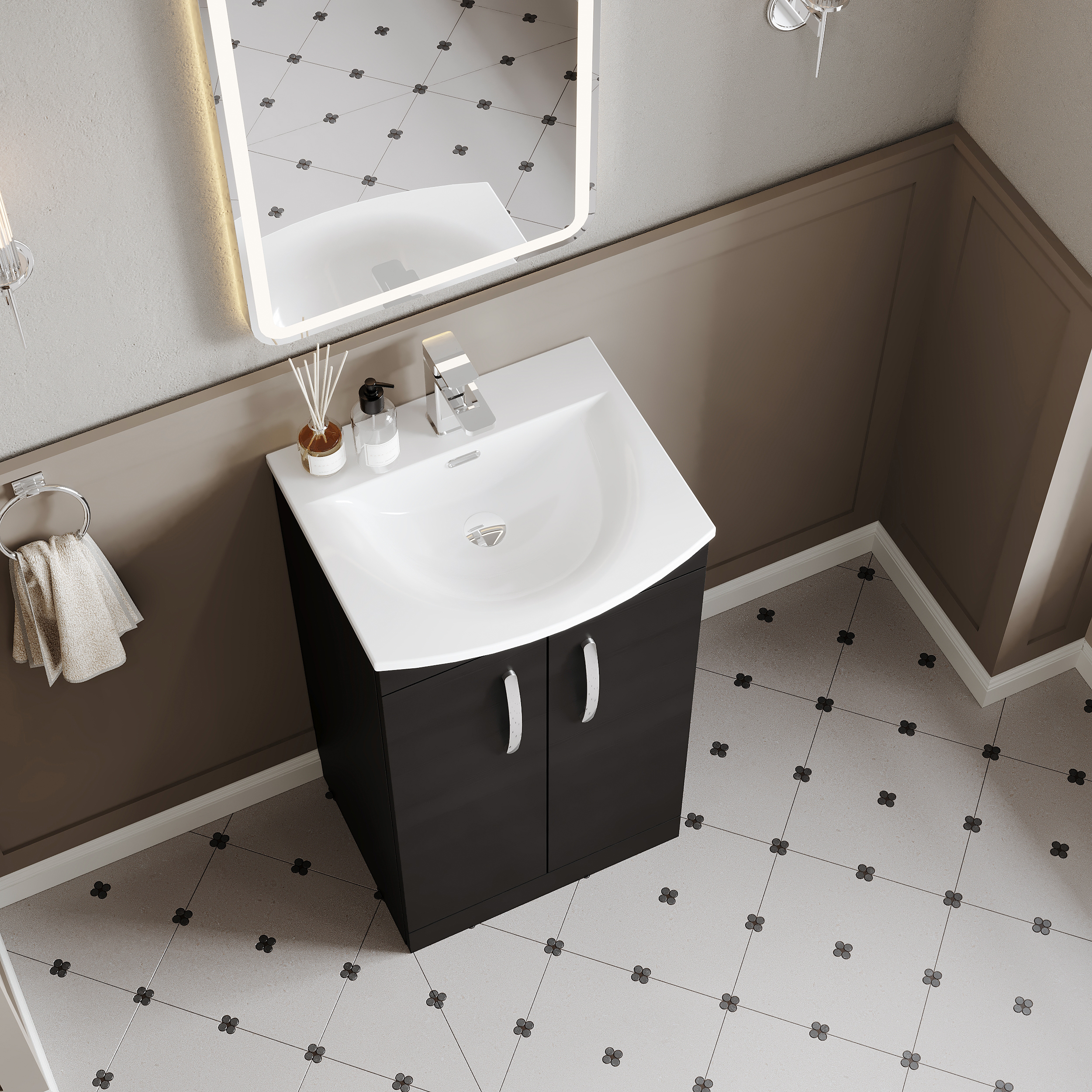 nuie Athena Floor Standing 2 Door Vanity With Curved 1 Tap Hole Ceramic Basin 500mm - Hacienda Black