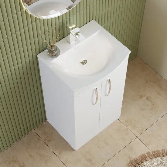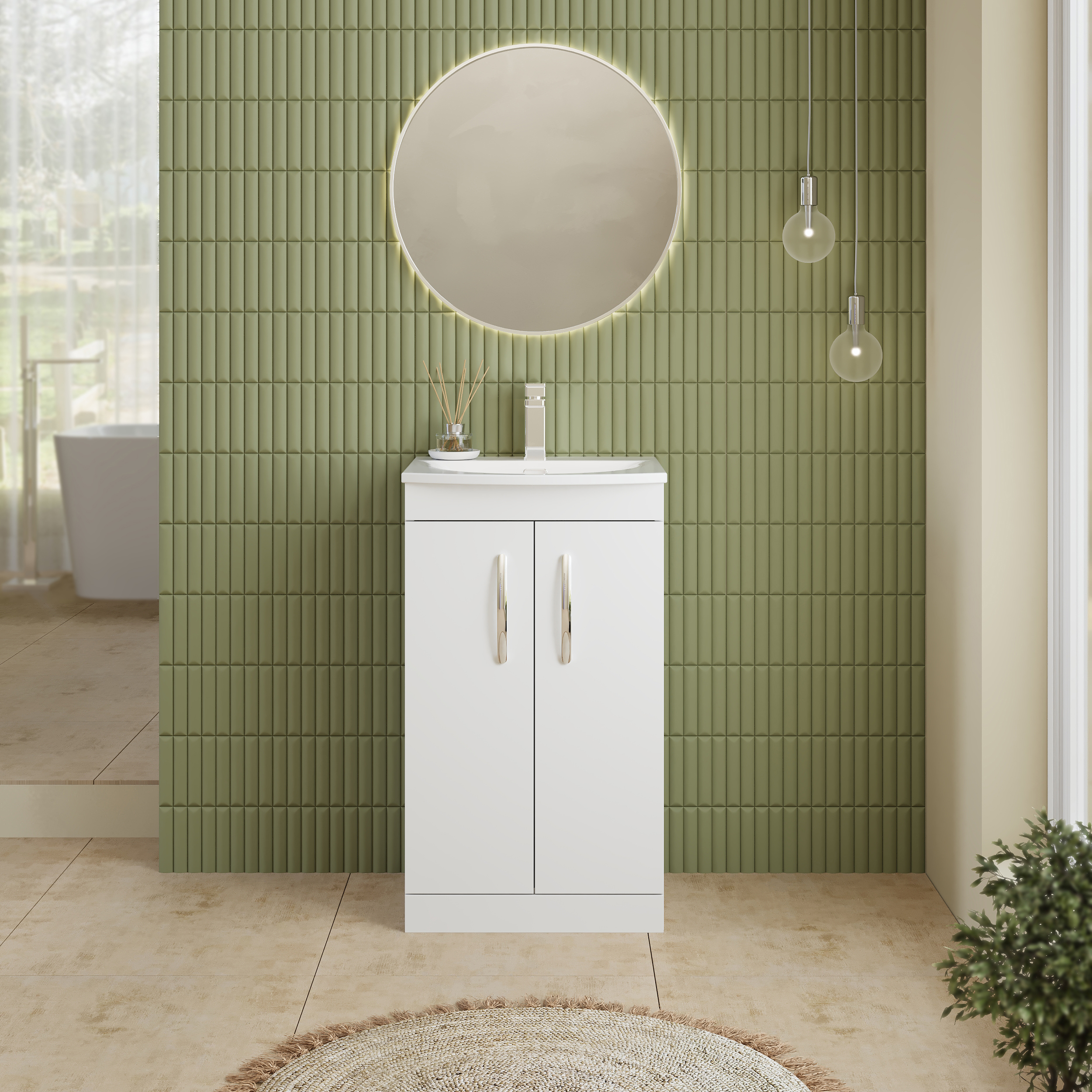nuie Athena Floor Standing 2 Door Vanity With Curved 1 Tap Hole Ceramic Basin 500mm - Gloss White