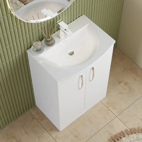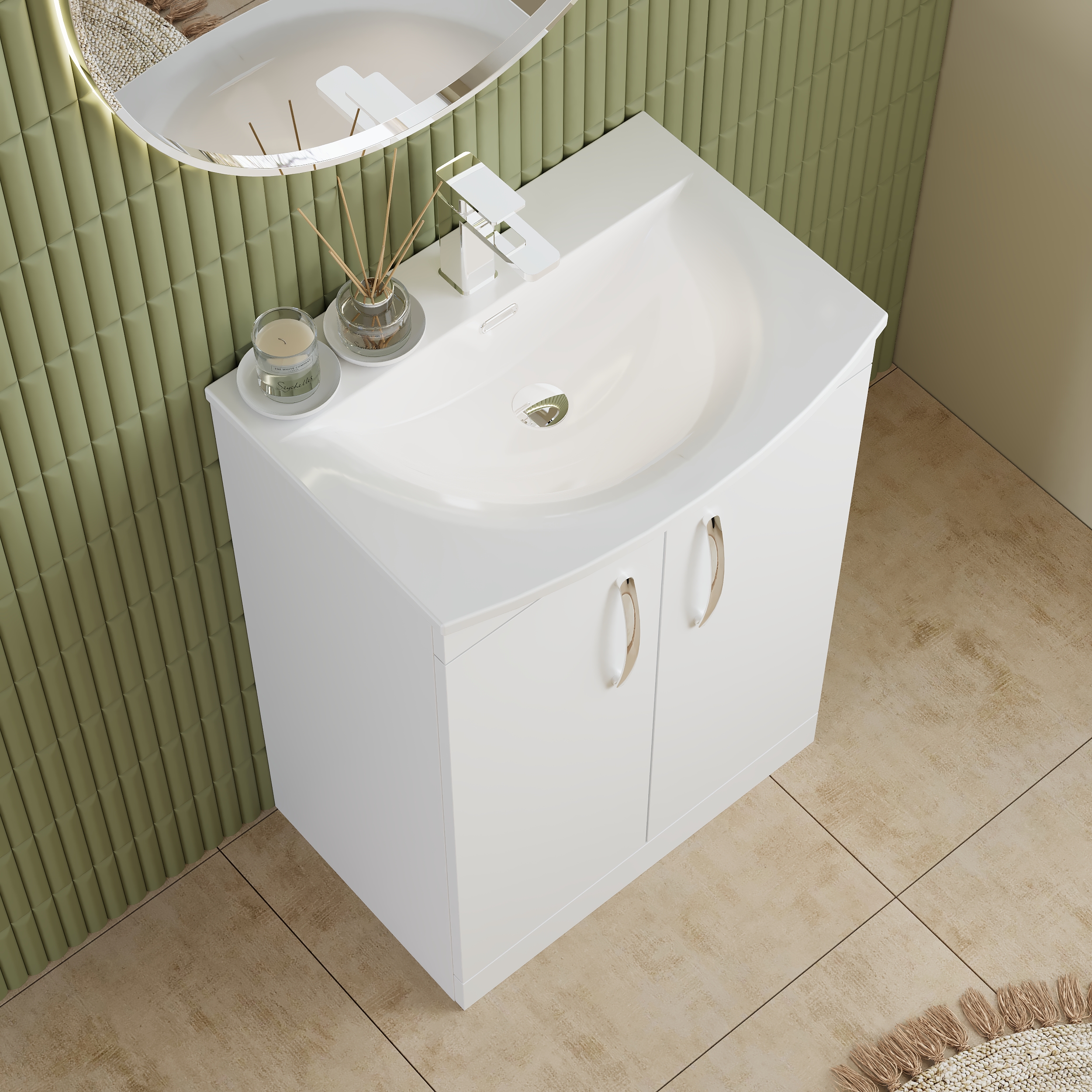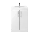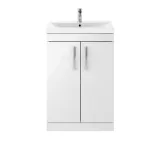 Nuie Athena 600mm Gloss White Floor Standing 2 Door Vanity Unit With 1 Tap Hole Basin