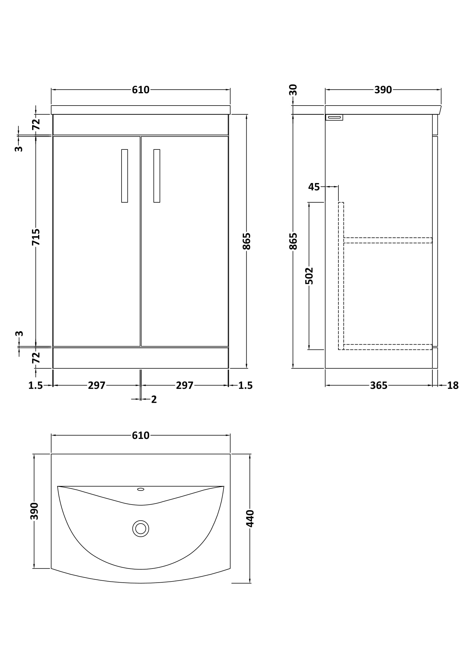 Nuie Athena 600mm Floor Standing Vanity Unit With 1 Tap Hole Basin