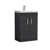 Nuie Athena 600mm Charcoal Black Floor Standing 2 Door Vanity Unit with Mid-Edge 1 Tap Hole Basin