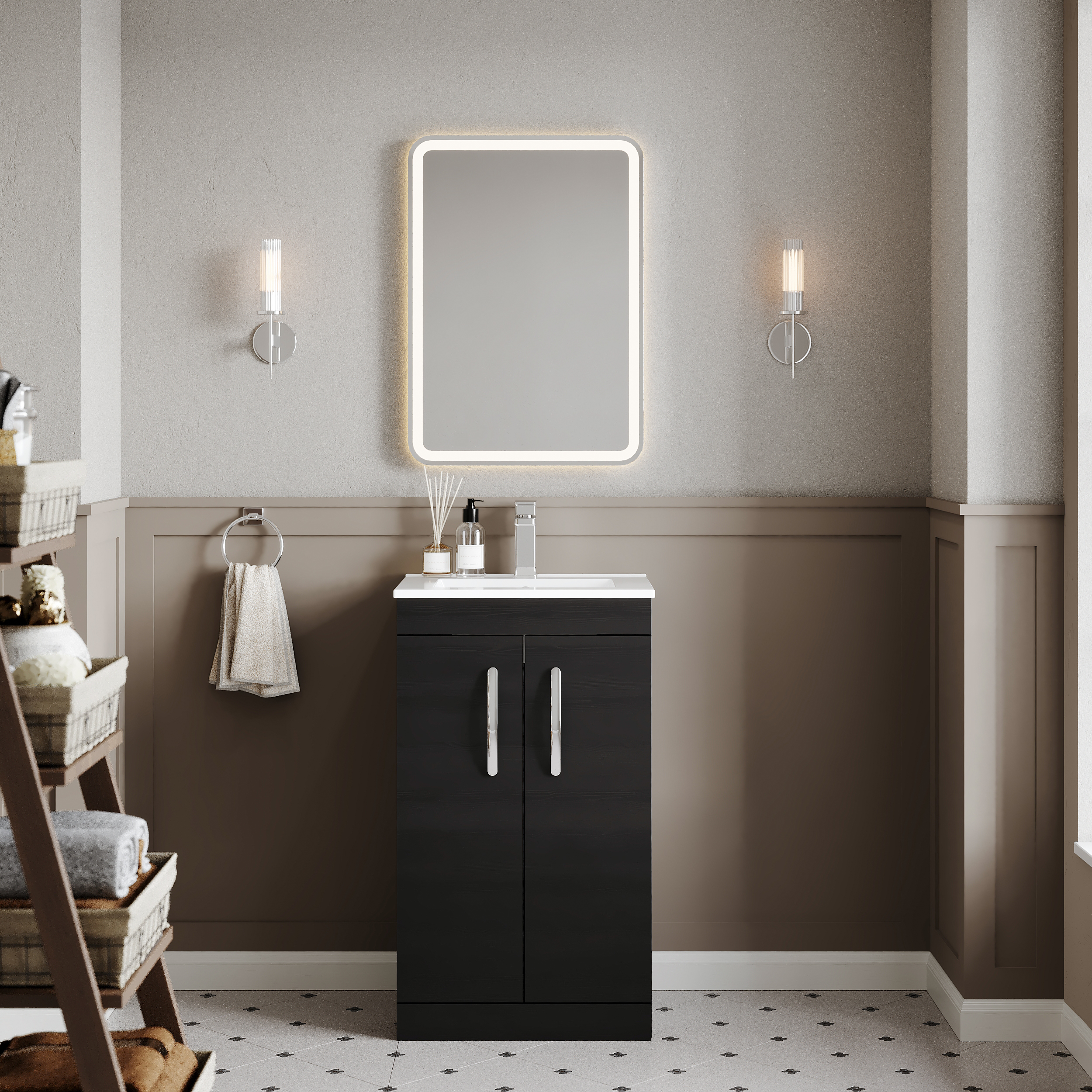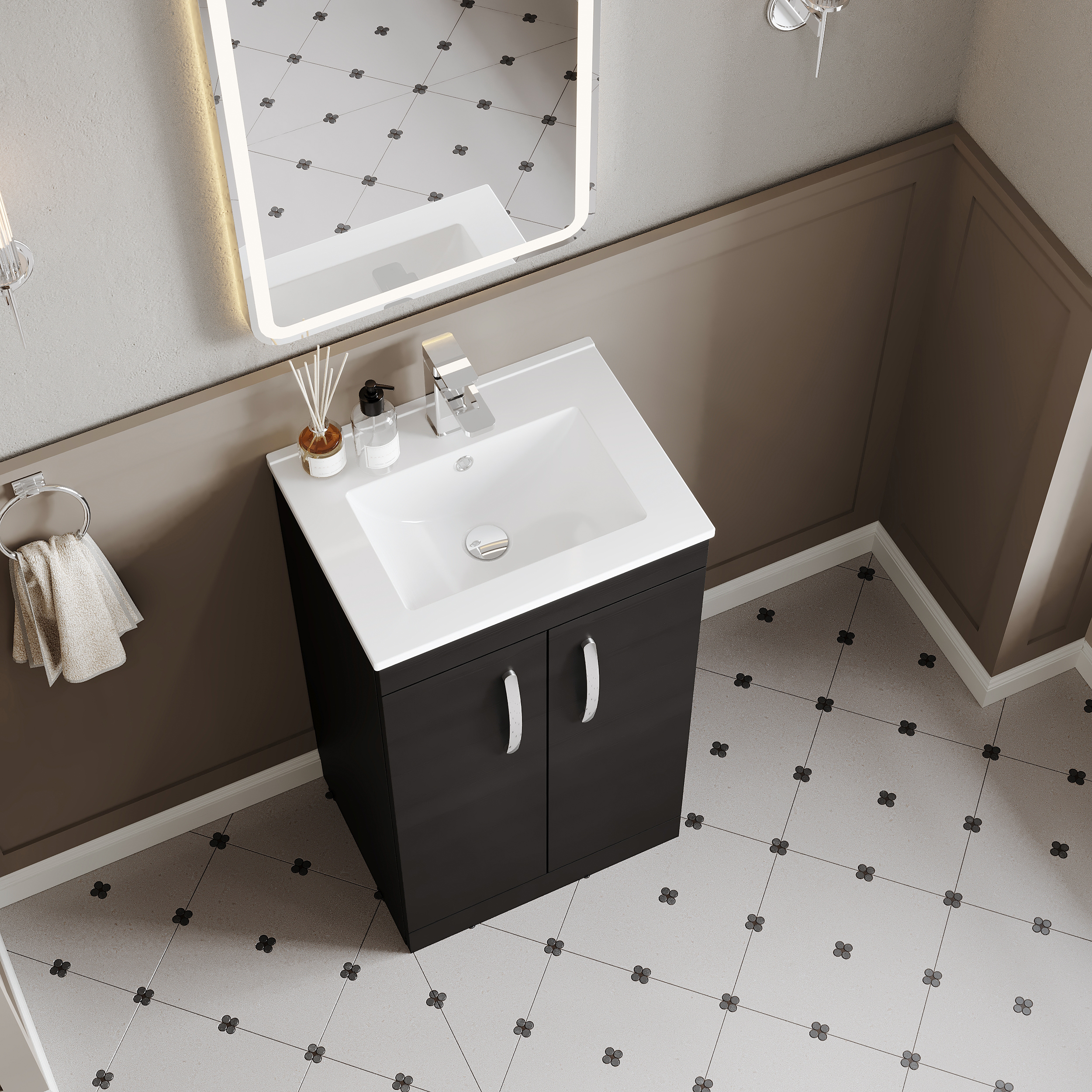 nuie Athena Floor Standing 2 Door Vanity With Minimalist 1 Tap Hole Ceramic Basin 500mm - Hacienda Black