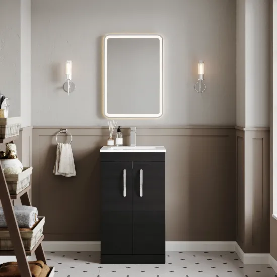 Nuie Athena 500mm Charcoal Black Floor Standing 2 Door Vanity Unit With Thin-Edge 1 Tap Hole Basin