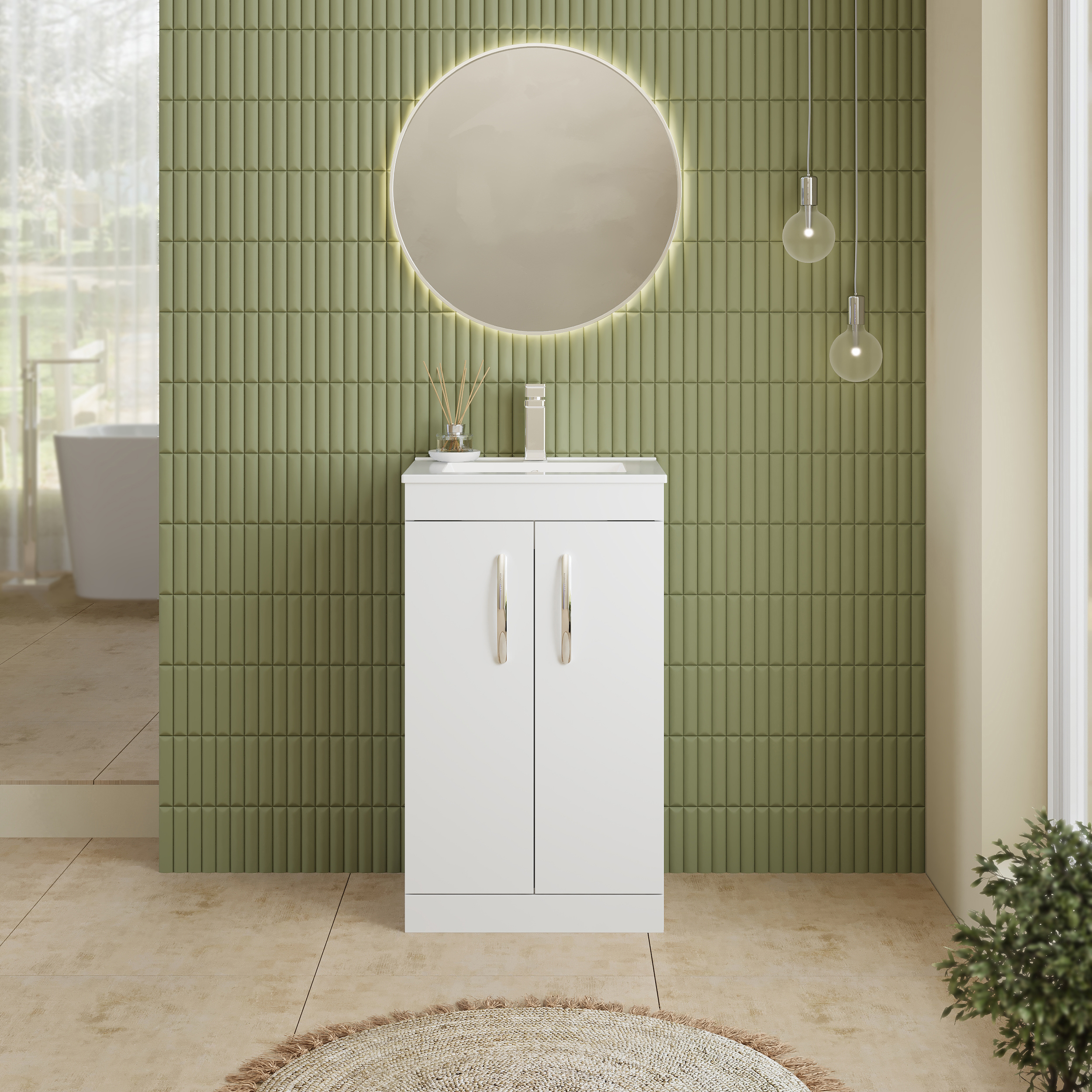 Nuie Athena 500mm Floor Standing 2 Door Vanity Unit With 1 Tap Hole Basin