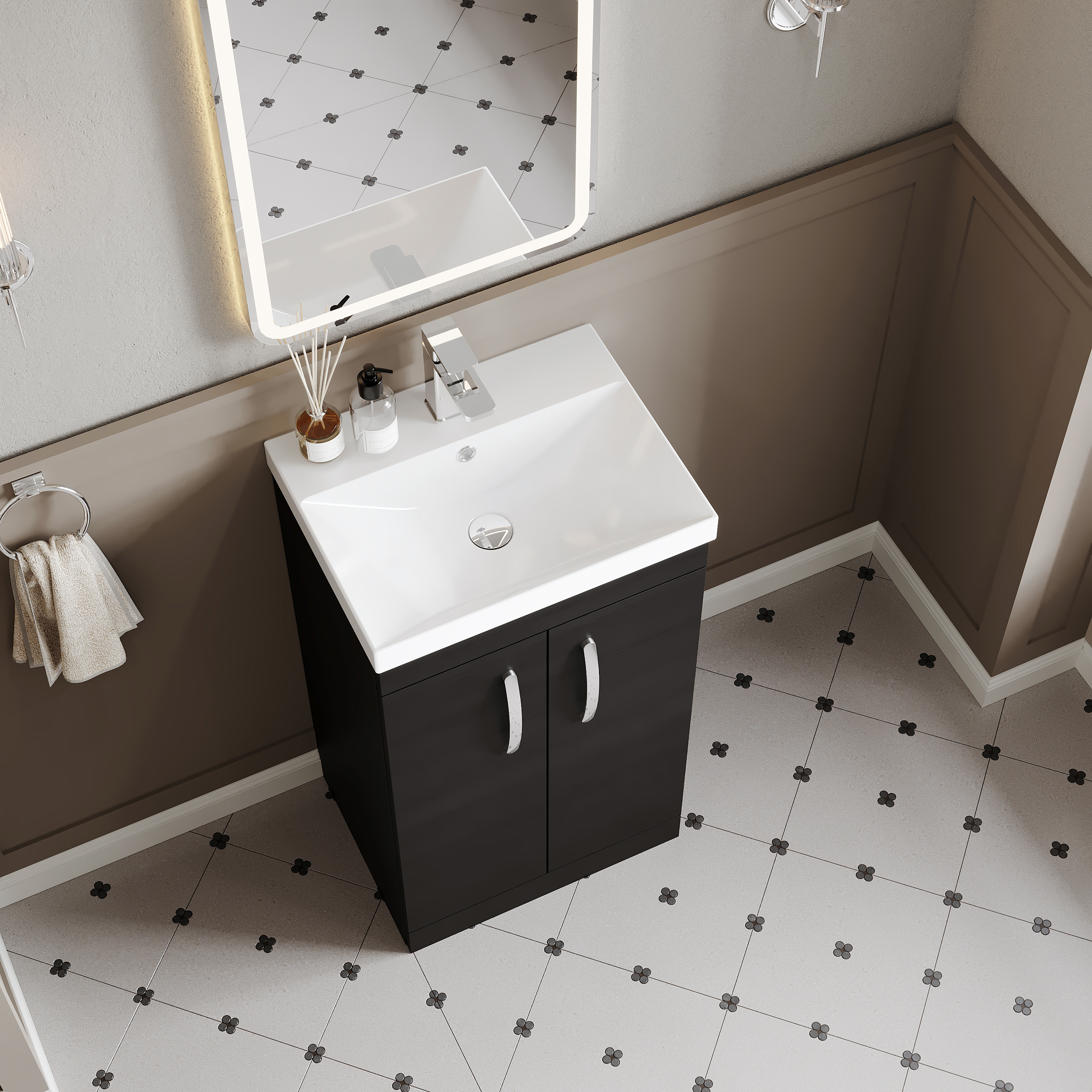 This striking Charcoal Black finish compliments any modern bathroom to create a designer look