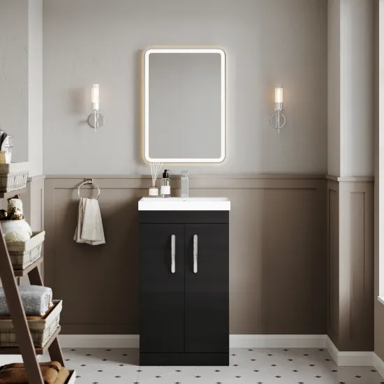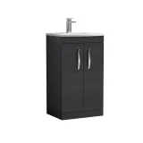 Nuie Athena 500mm Charcoal Black Floor Standing 2 Door Vanity Unit With 1 Tap Hole Basin