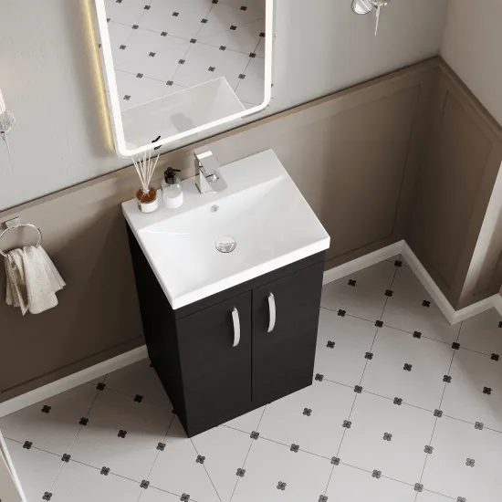 nuie Athena Floor Standing 2 Door Vanity With Thin-Edge 1 Tap Hole Ceramic Basin 500mm - Hacienda Black
