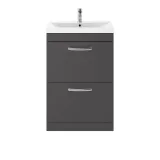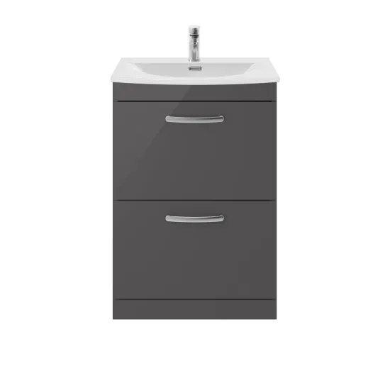 Nuie Athena 600mm Gloss Grey Floor Standing 2 Drawer Vanity Unit With 1 Tap Hole Basin