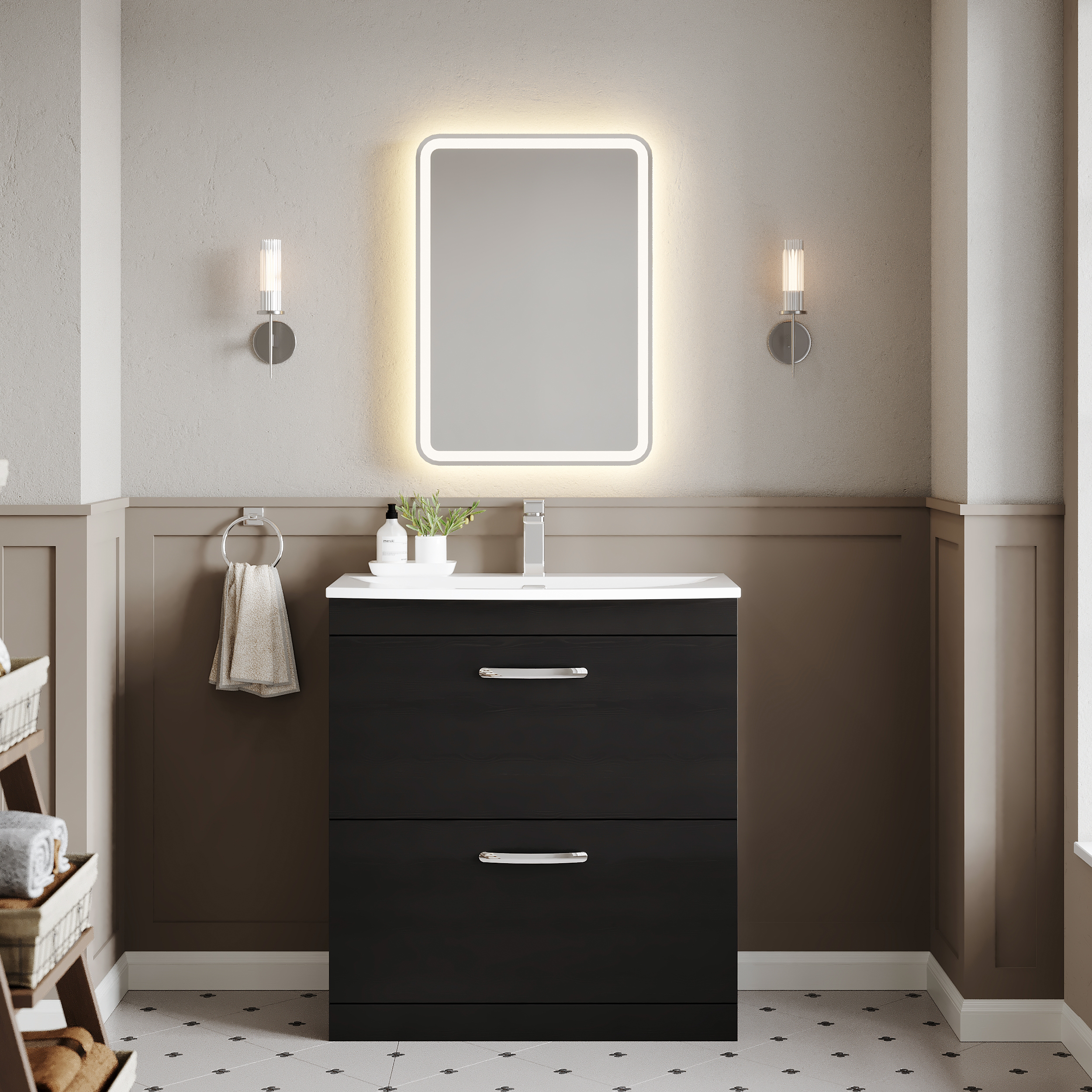 nuie Athena Floor Standing 2 Drawer Vanity With Curved 1 Tap Hole Ceramic Basin 800mm - Hacienda Black