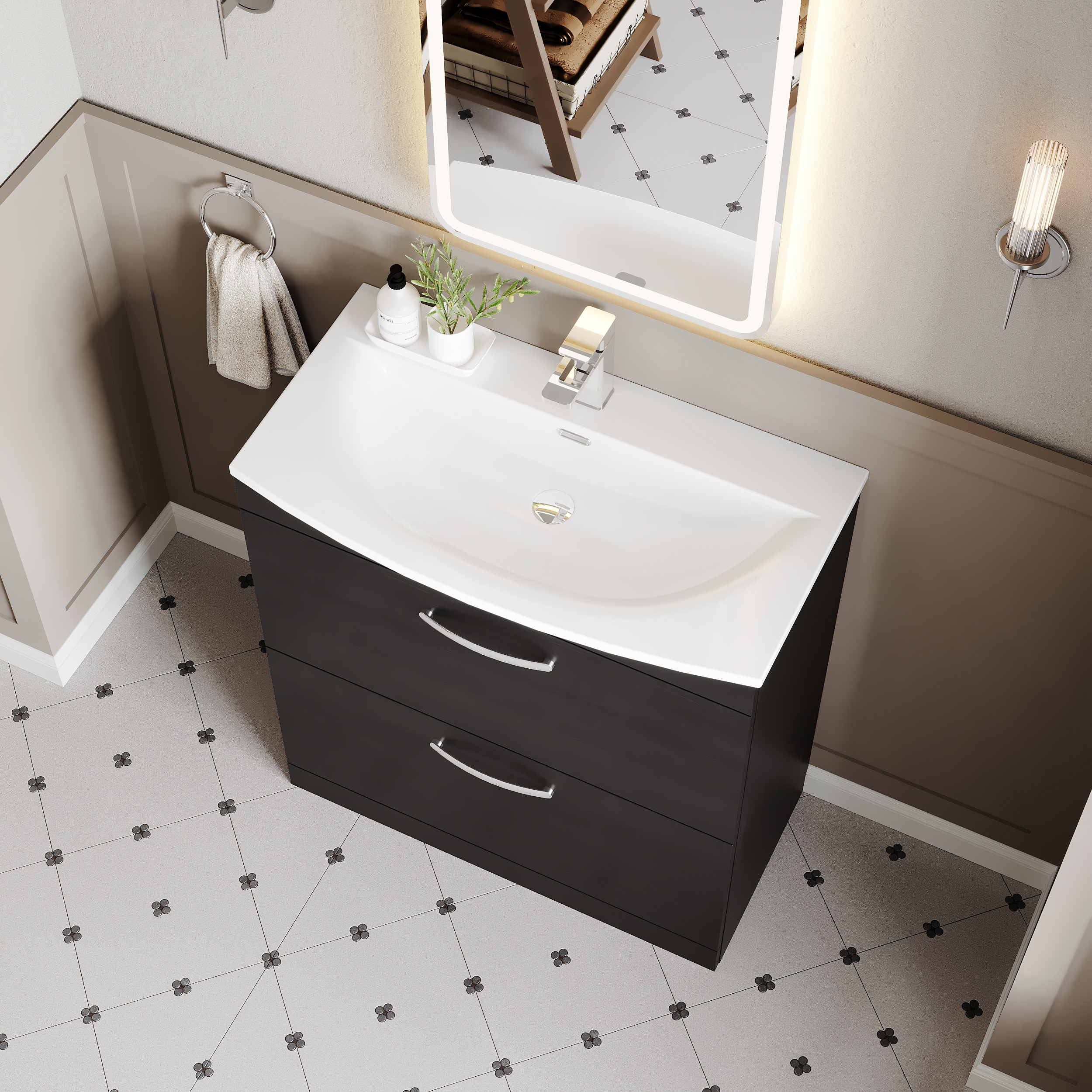This striking Charcoal Black finish compliments any modern bathroom to create a designer look