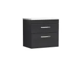Nuie Athena 600mm Wall Hung Charcoal Black 2 Drawer Vanity Unit With Sparkling White Worktop