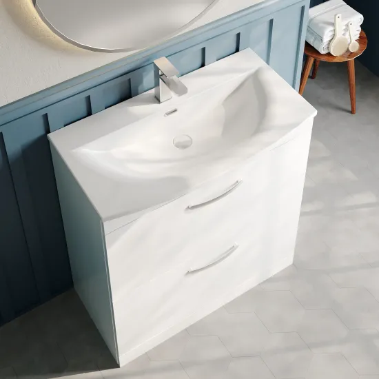 Nuie Athena 800mm 2 Drawer Floor Standing Vanity Unit With 1 Tap Hole Basin