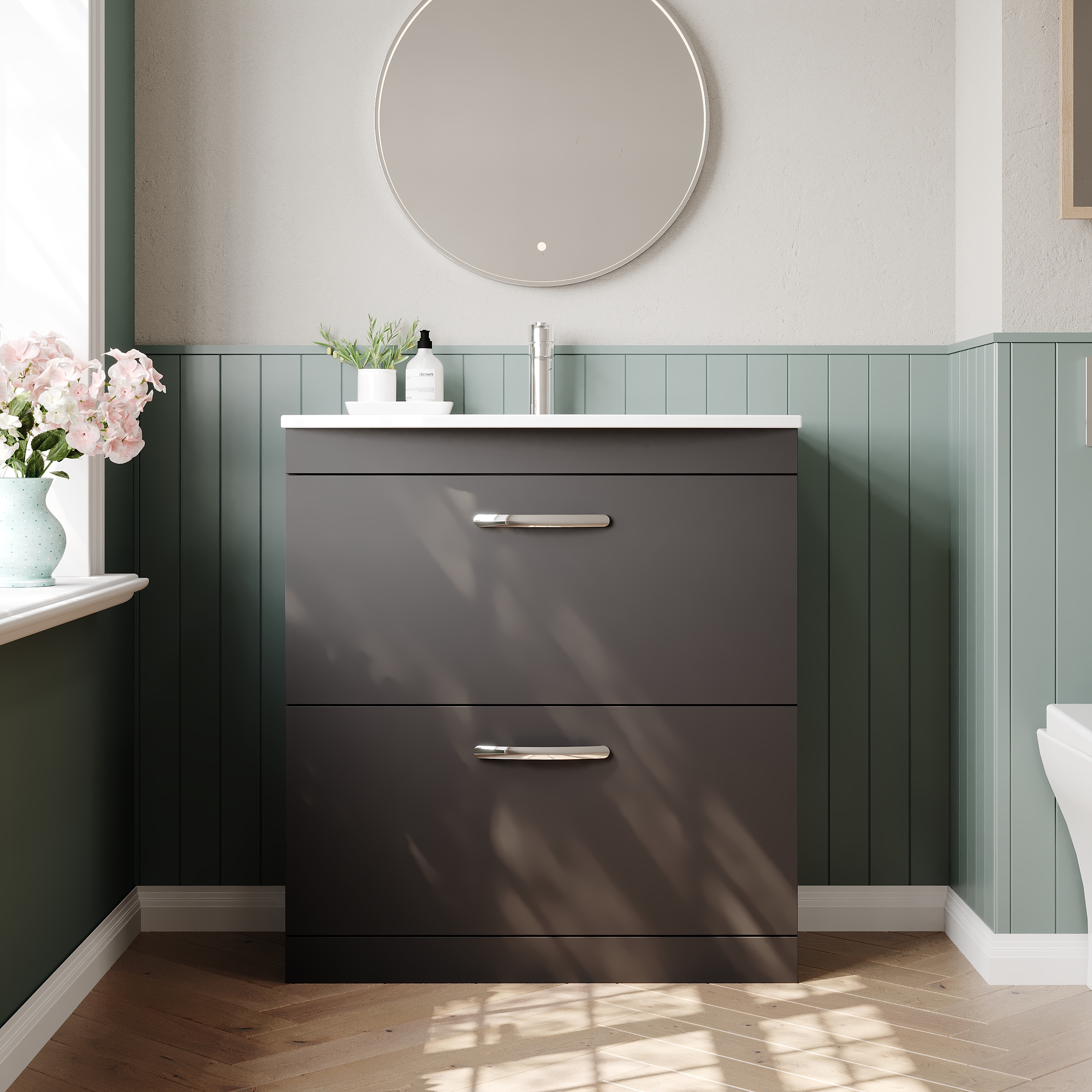 This floor standing unit gives ample storage, perfect for a busy family bathroom
