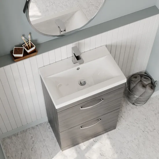nuie Athena Floor Standing 2 Drawer Vanity With Mid-Edge 1 Tap Hole Ceramic Basin 600mm - Anthracite Woodgrain