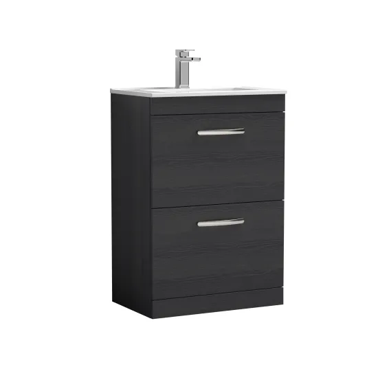 nuie Athena Floor Standing 2 Drawer Vanity With Minimalist 1 Tap Hole Ceramic Basin 600mm - Hacienda Black