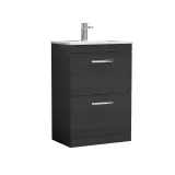 Nuie Athena 600mm Anthracite Woodgrain Floor Standing 2 Drawer Vanity Unit With 1 Tap Hole Basin