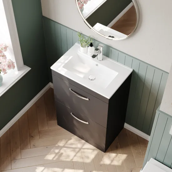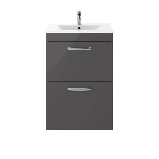 nuie Athena Floor Standing 2 Drawer Vanity With Minimalist 1 Tap Hole Ceramic Basin 600mm - Gloss Grey