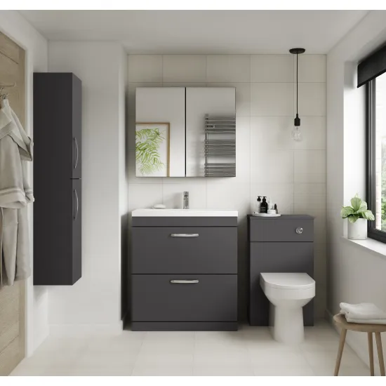 This sleek gloss grey finish compliments any modern bathroom and creates a designer look
