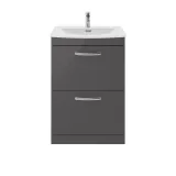 Nuie Athena 600mm Gloss Grey Floor Standing 2 Drawer Vanity Unit with 1 Tap Hole Basin