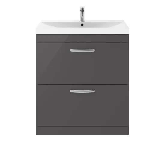 nuie Athena Floor Standing 2 Drawer Vanity With Thin-Edge 1 Tap Hole Ceramic Basin 800mm - Gloss Grey