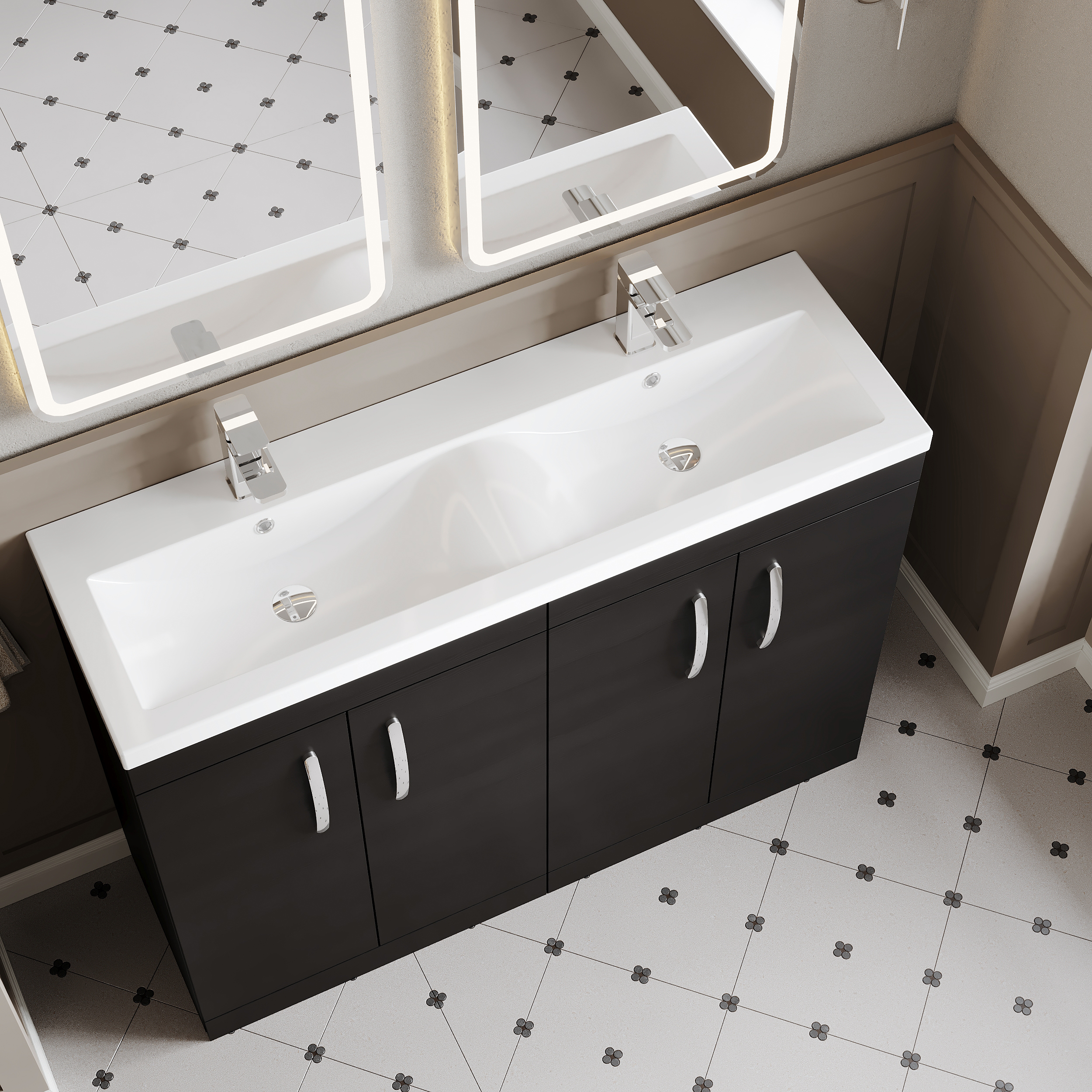 nuie Athena Floor Standing 4 Door Vanity With Twin Ceramic Basin 1200mm - Hacienda Black