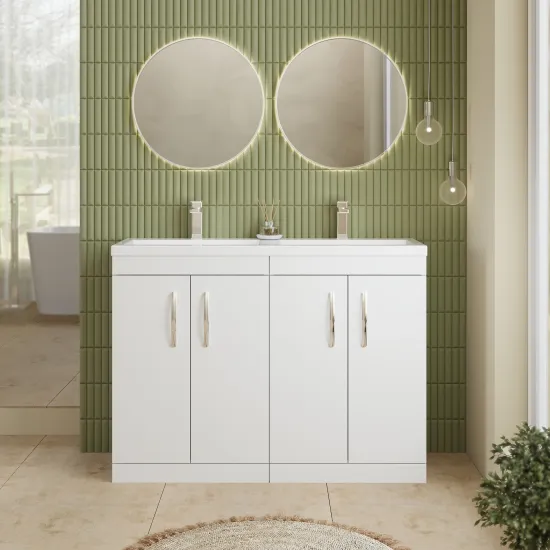 nuie Athena Floor Standing 4 Door Vanity With Twin Ceramic Basin 1200mm - Gloss White