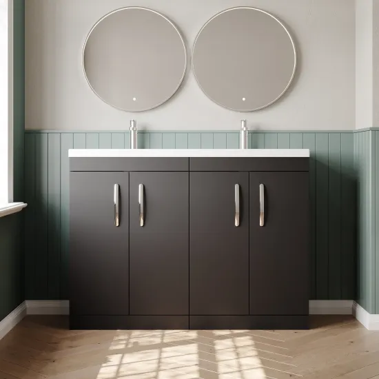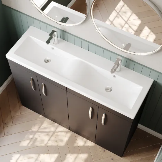 Nuie Athena 1200mm Anthracite Woodgrain Floor Standing 4 Door Vanity Unit With Twin Basin