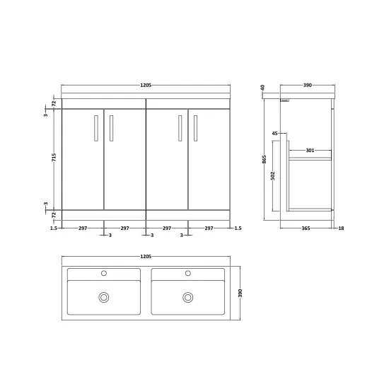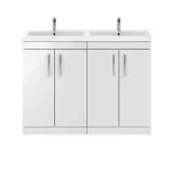 Nuie Athena 1200mm Floor Standing 4 Door Vanity Unit With Twin Polymarble Basin