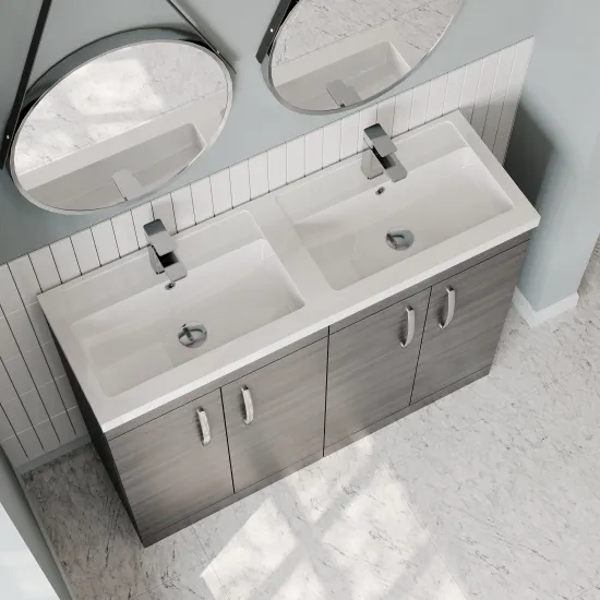 nuie Athena Floor Standing 4 Door Vanity With Twin Polymarble Basin 1200mm - Anthracite Woodgrain