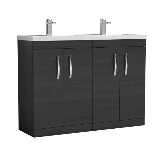 Nuie Athena 1205mm Floor Standing 4 Door Vanity Unit With Twin Polymarble Basin