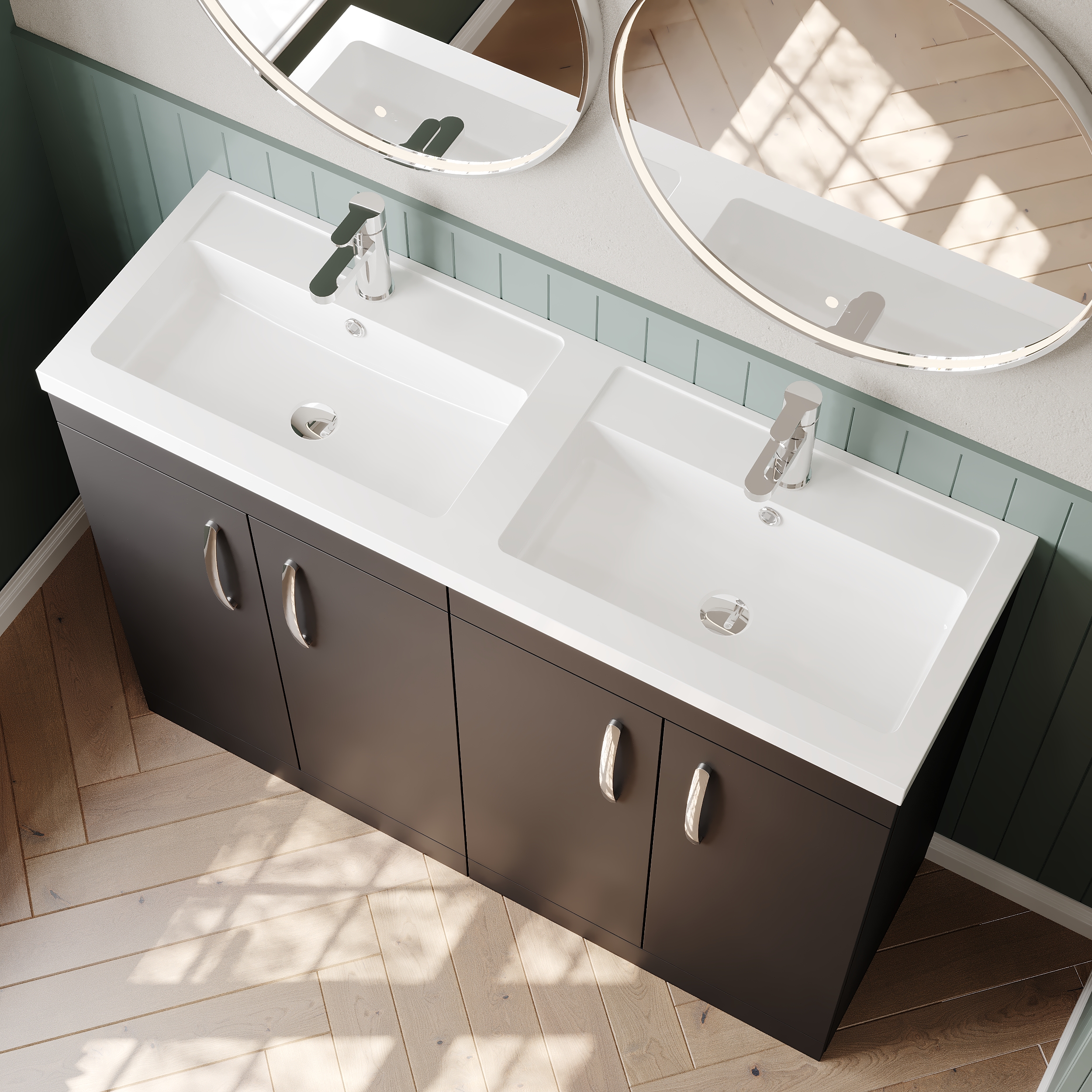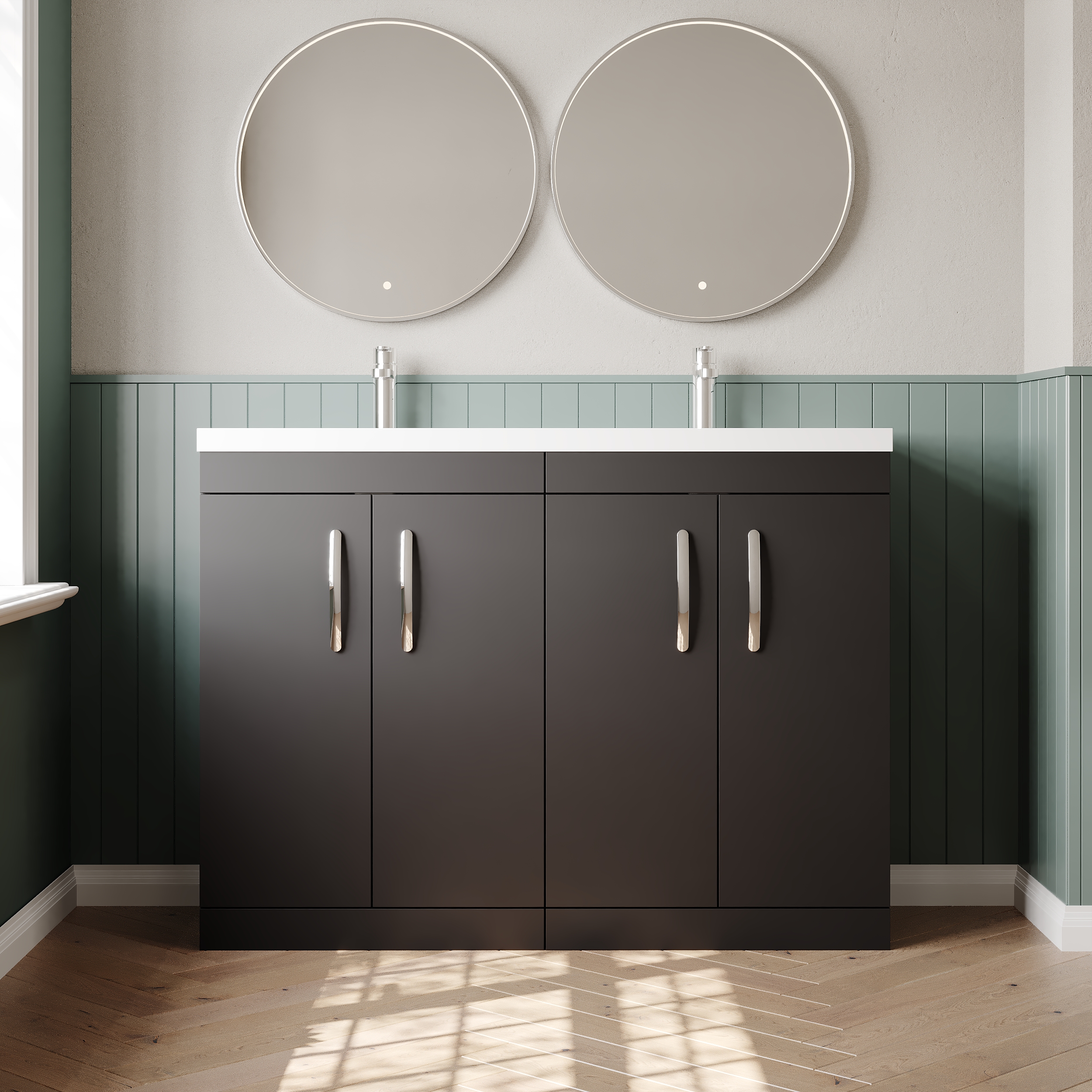 Nuie Athena 1205mm Floor Standing 4 Door Vanity Unit With Twin Polymarble Basin