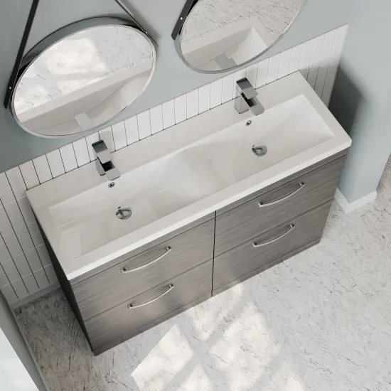 nuie Athena Floor Standing 4 Drawer Vanity With Twin Ceramic Basin 1200mm - Anthracite Woodgrain