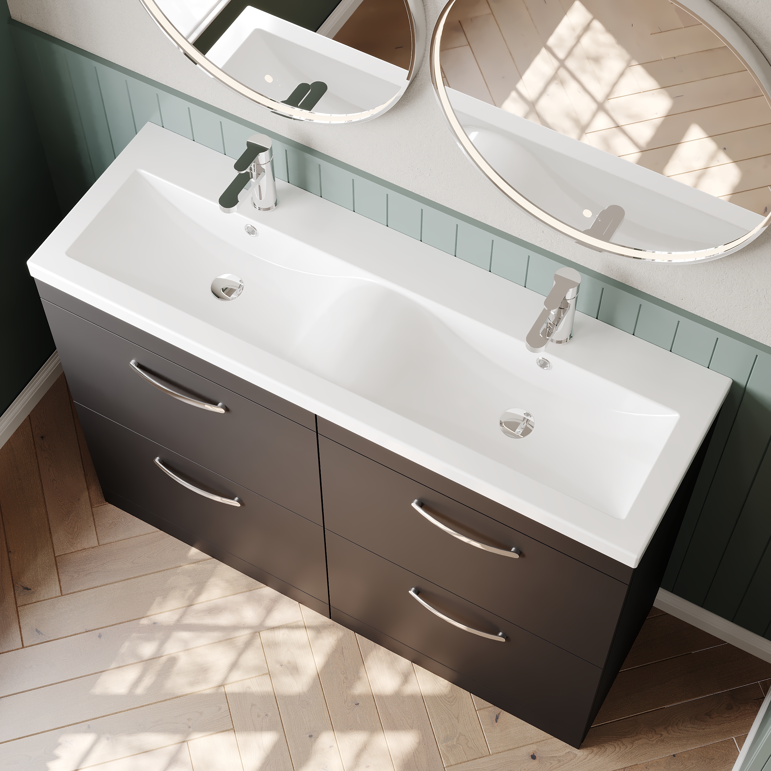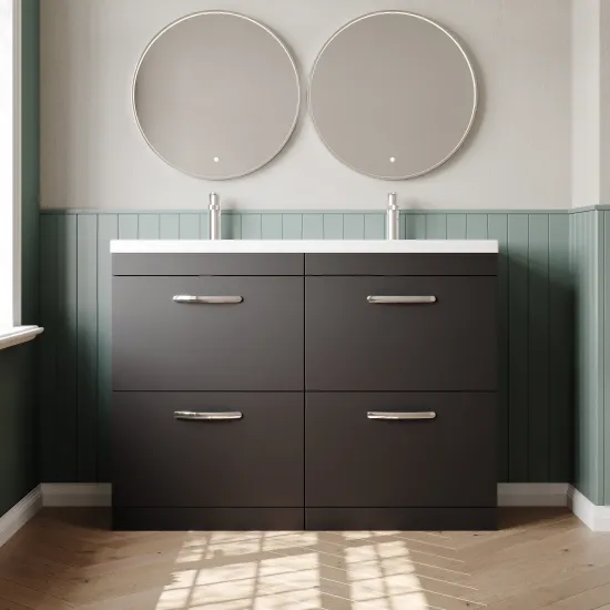 Nuie Athena 1200mm Floor Standing Anthracite Woodgrain 4 Drawer Vanity Unit With Twin Basin
