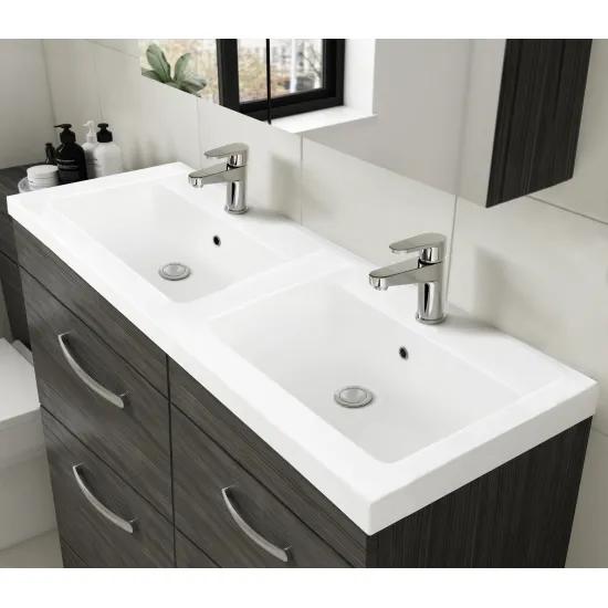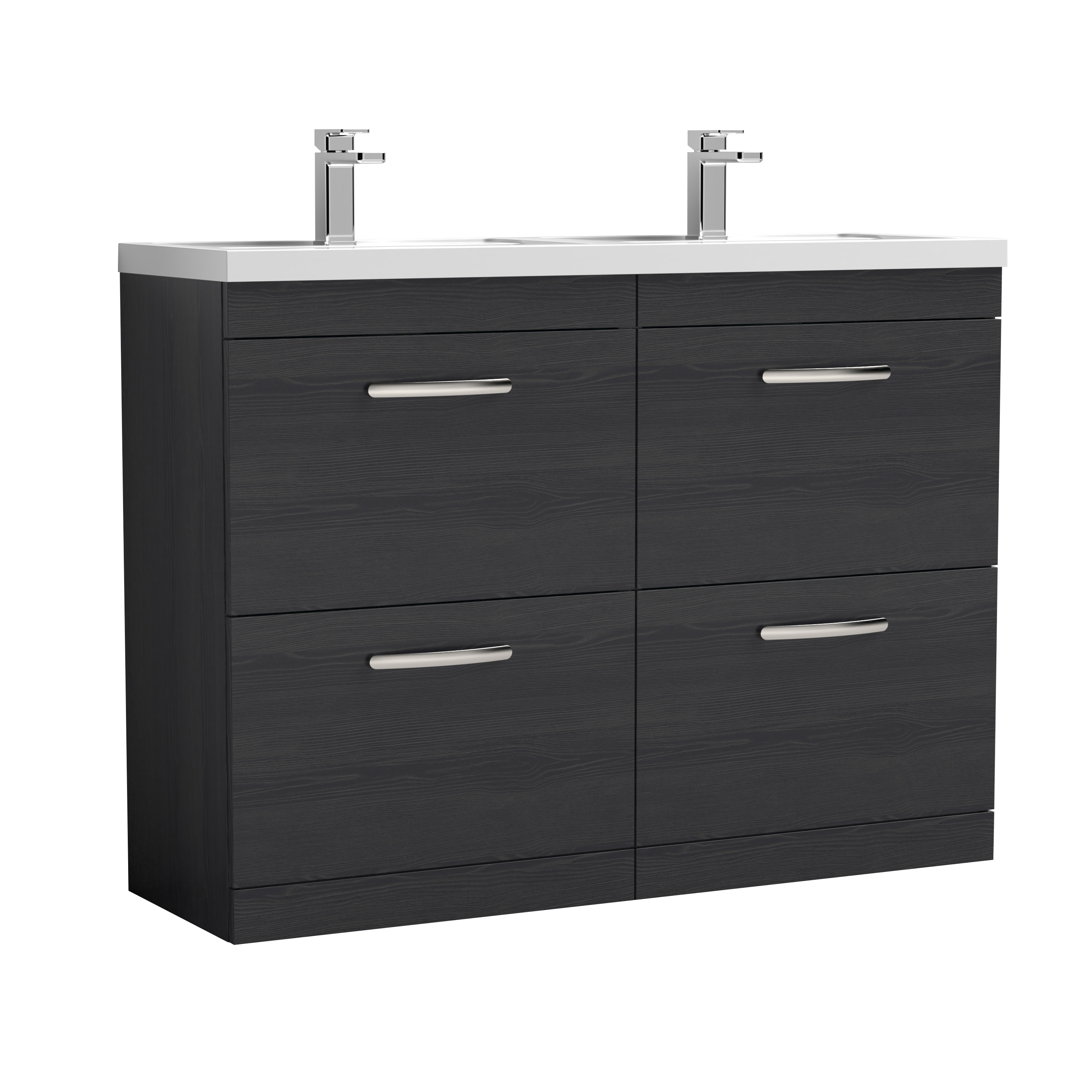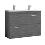 Nuie Athena 1200mm Anthracite Woodgrain Floor Standing 4 Drawer Vanity Unit With Twin Polymarble Basin