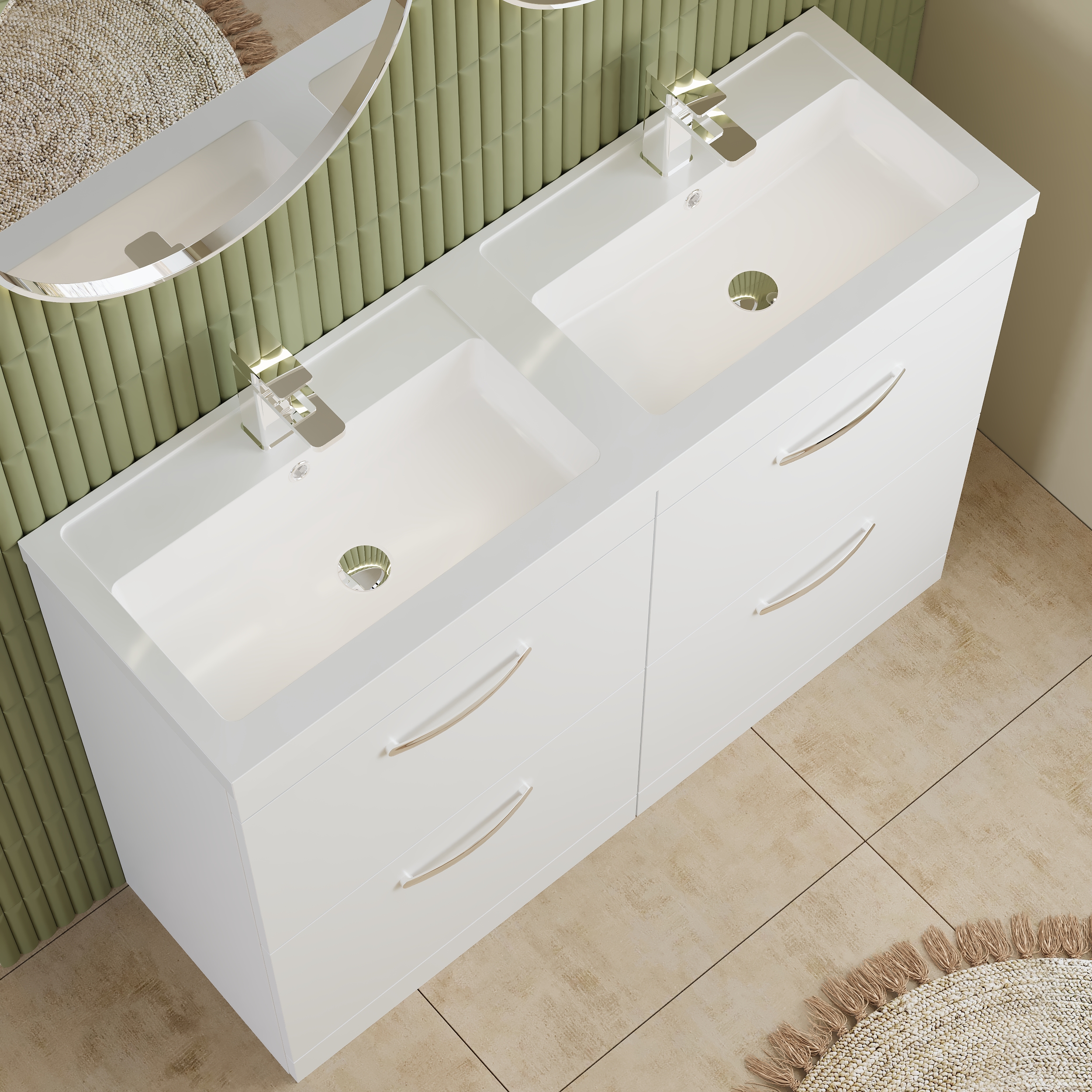 nuie Athena Floor Standing 4 Drawer Vanity With Twin Polymarble Basin 1200mm - Gloss White