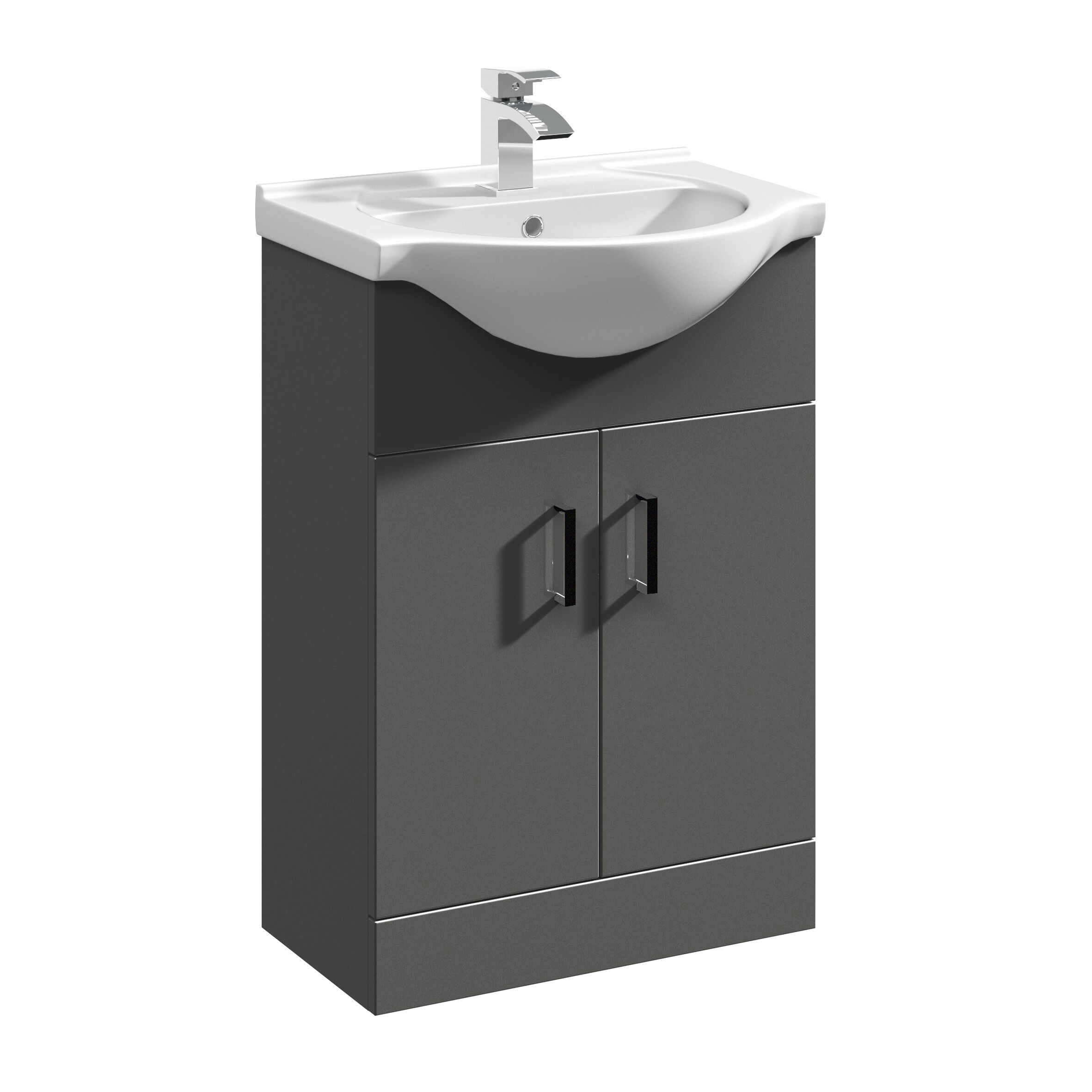 Nuie Choice Axis 550mm Soft Black Floor Standing 2 Door Vanity Unit with Basin