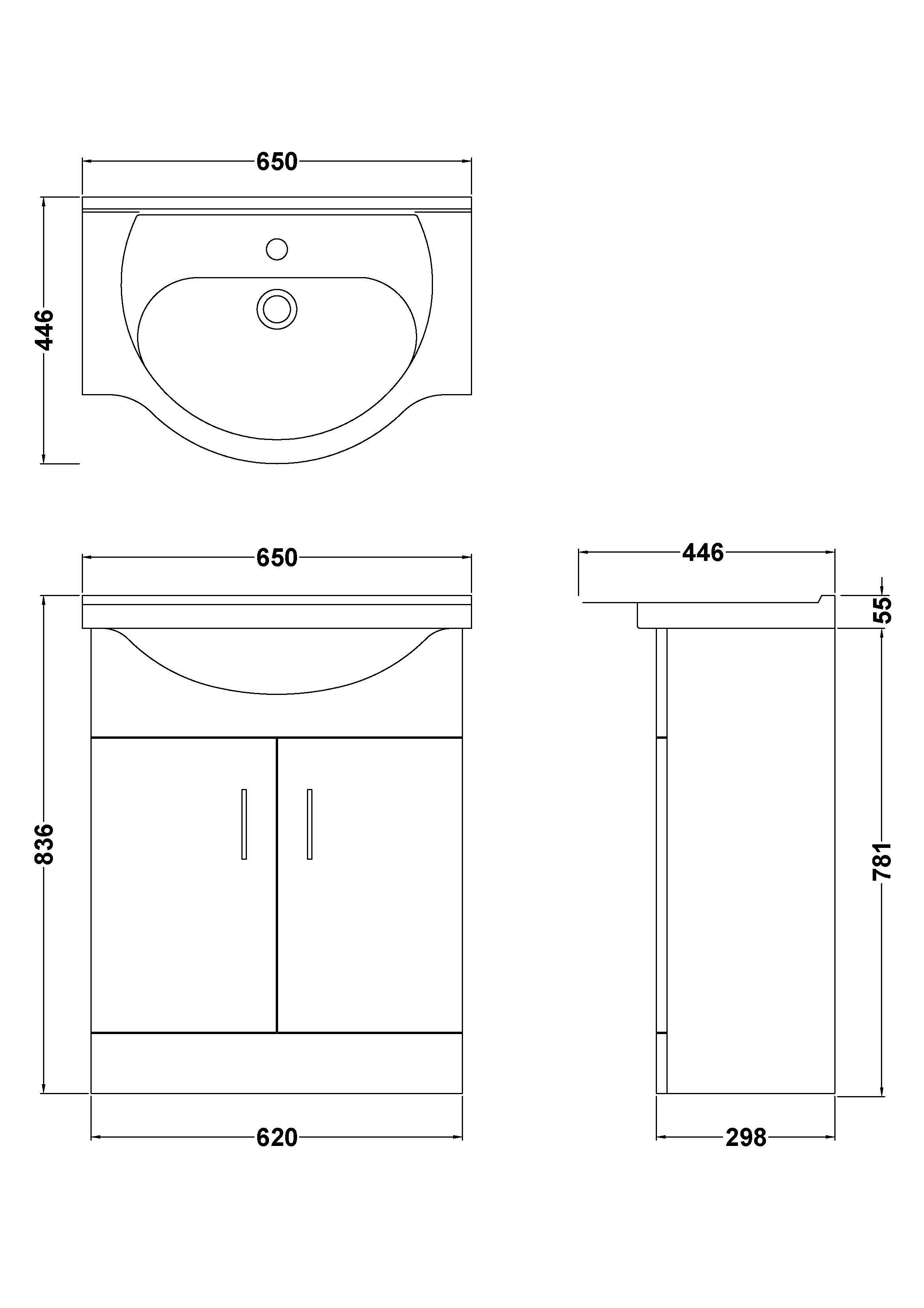 Nuie Choice Axis 650mm Floor Standing 2 Door Vanity Unit with Basin