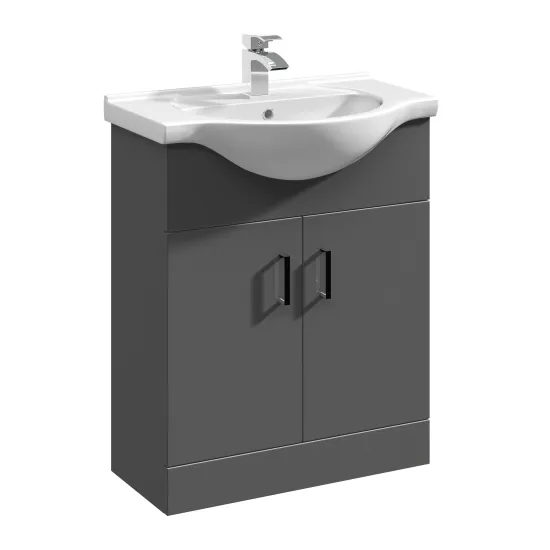 Nuie Choice Axis 650mm Gloss Grey Floor Standing 2 Door Vanity Unit With Basin
