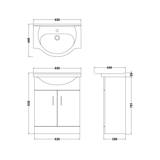 nuie Axis Floor Standing 2 Door Vanity Unit with Round Ceramic Basin 650mm - Soft Satin Black