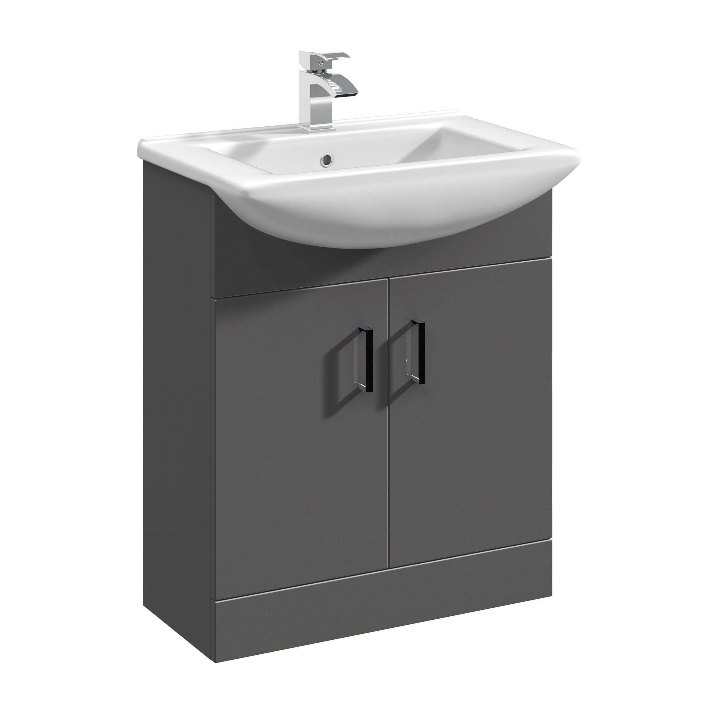 Nuie Choice Axis 650mm Gloss Grey Floor Standing 2 Door Vanity Unit with Rectangular Basin