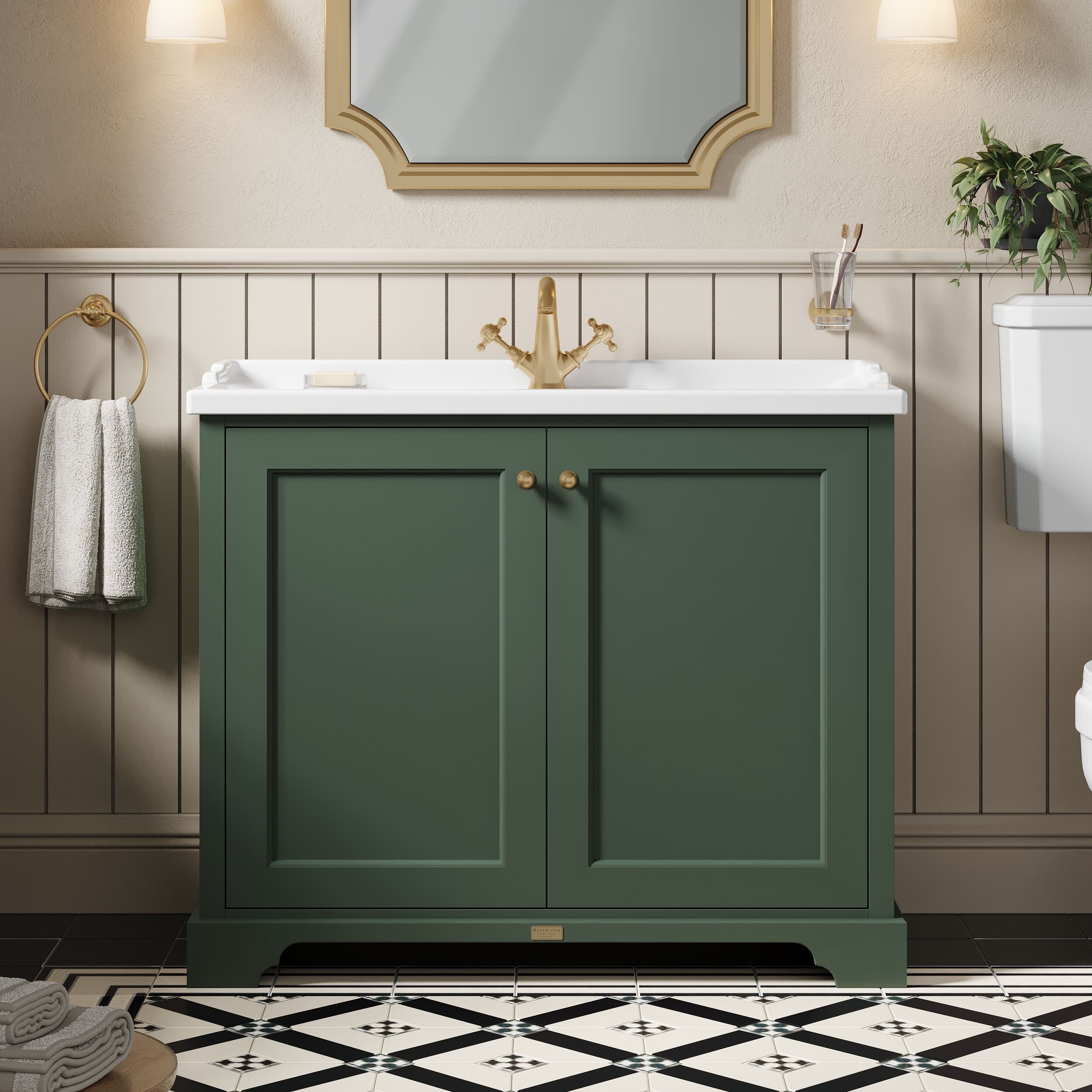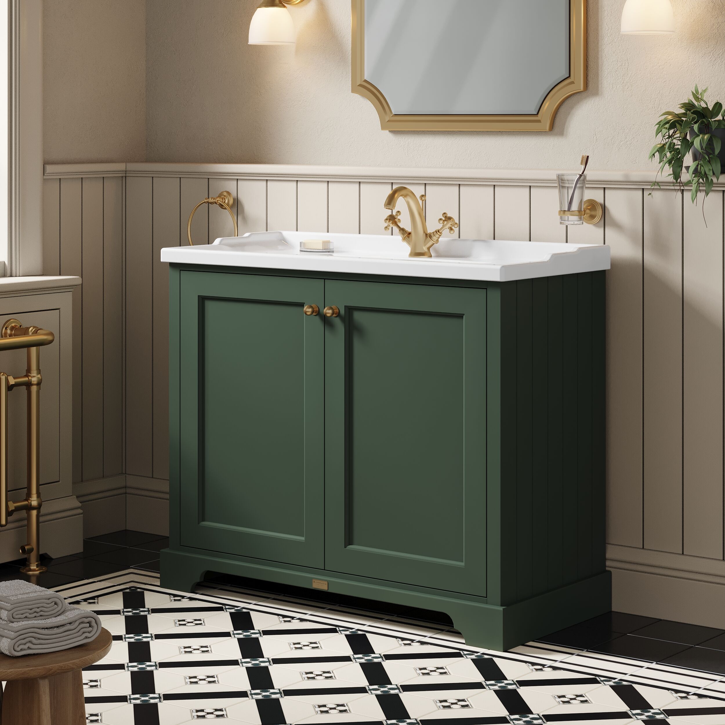 Bayswater 1000mm 2-Door Cabinet With 1 Tap Hole Basin - Hunter Green